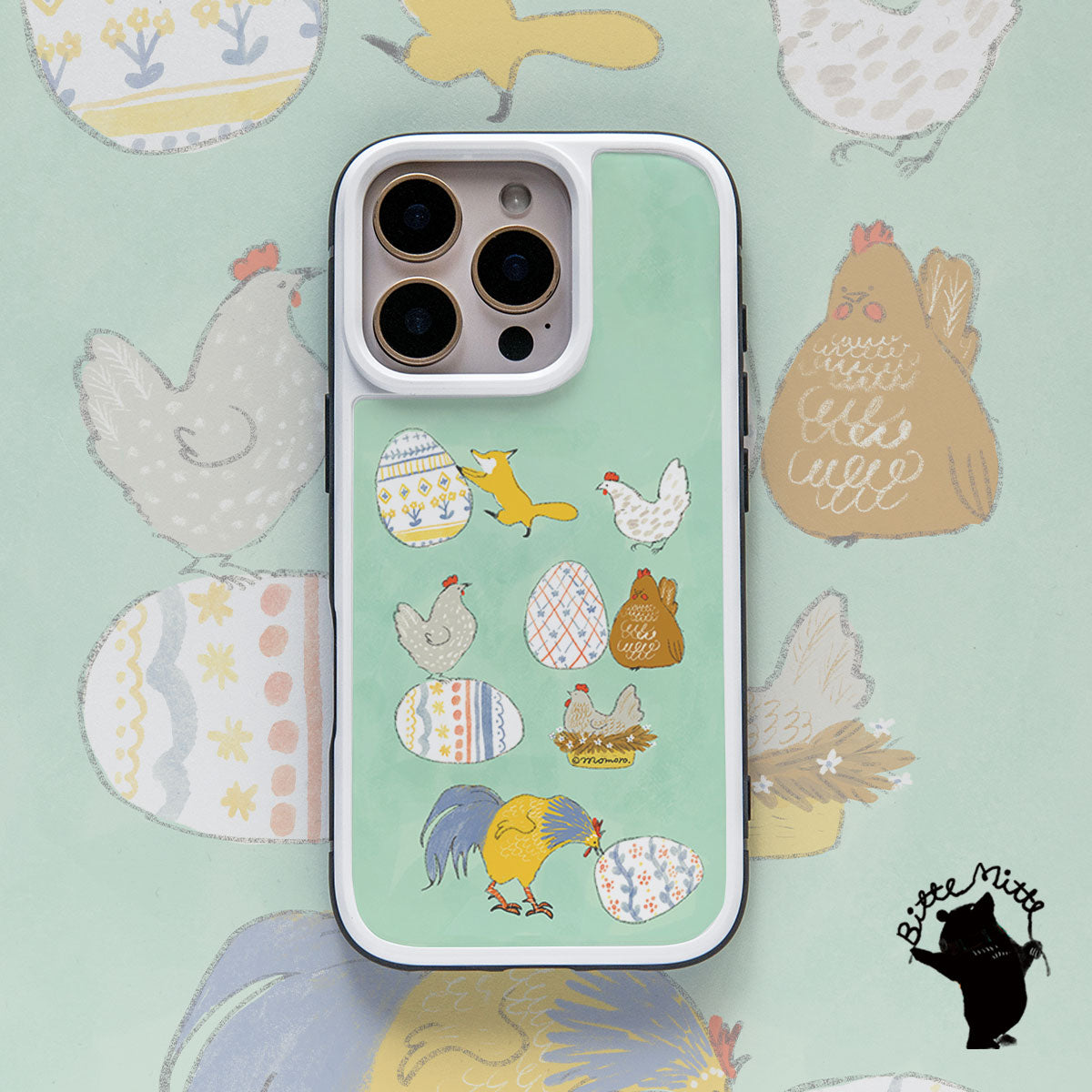 スマホケース | 強化ガラス 春を感じるデザイン キツネ とり イースターエッグ(BitteMitte)