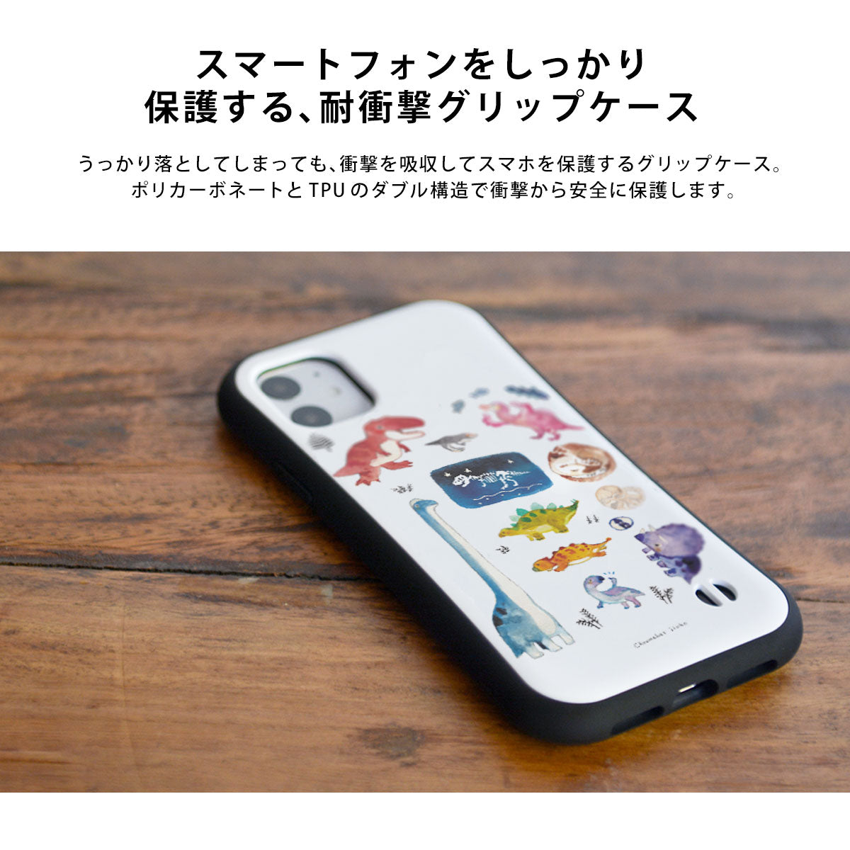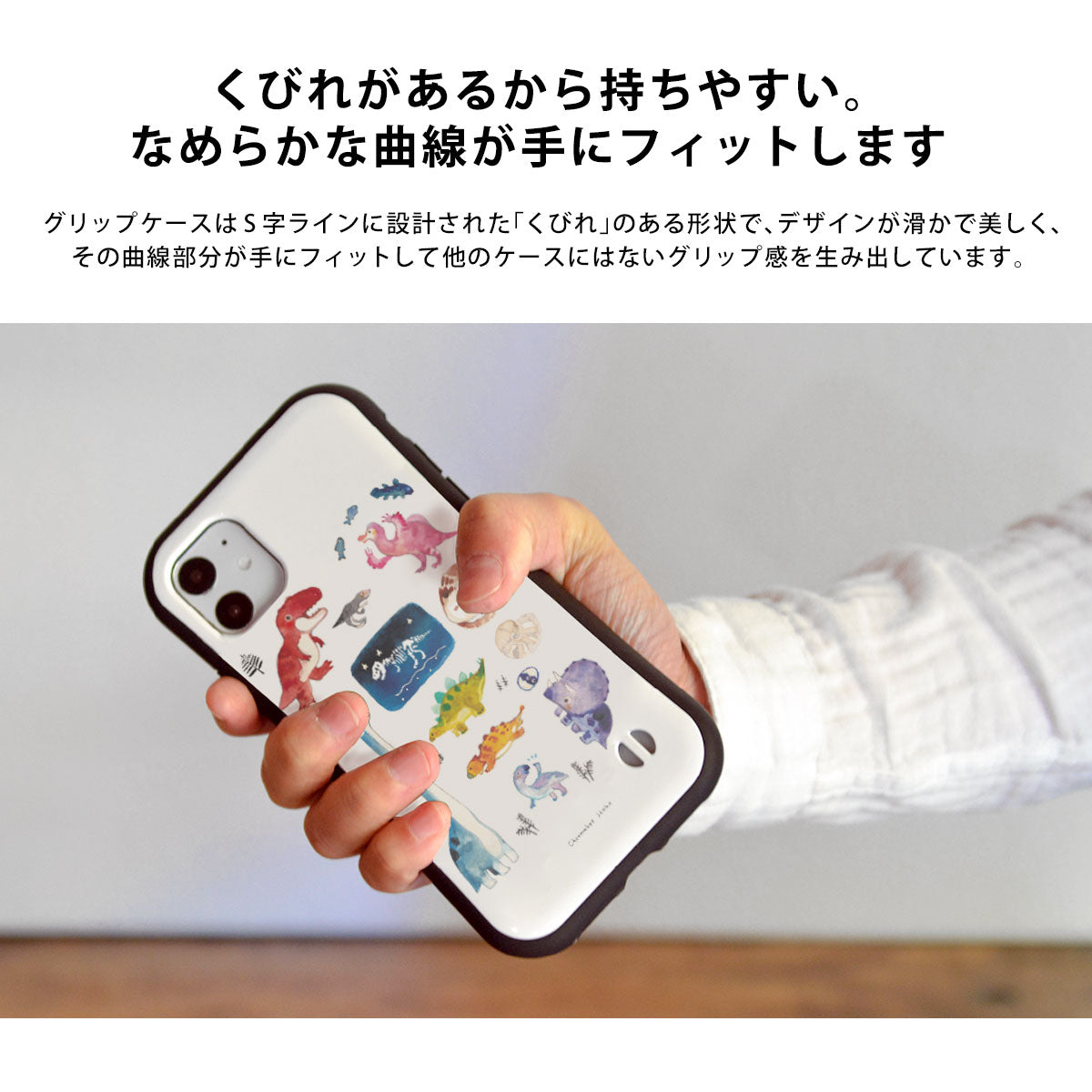 ・耐衝撃に優れる、にぎりやすいグリップケース。iPhoneに対応。