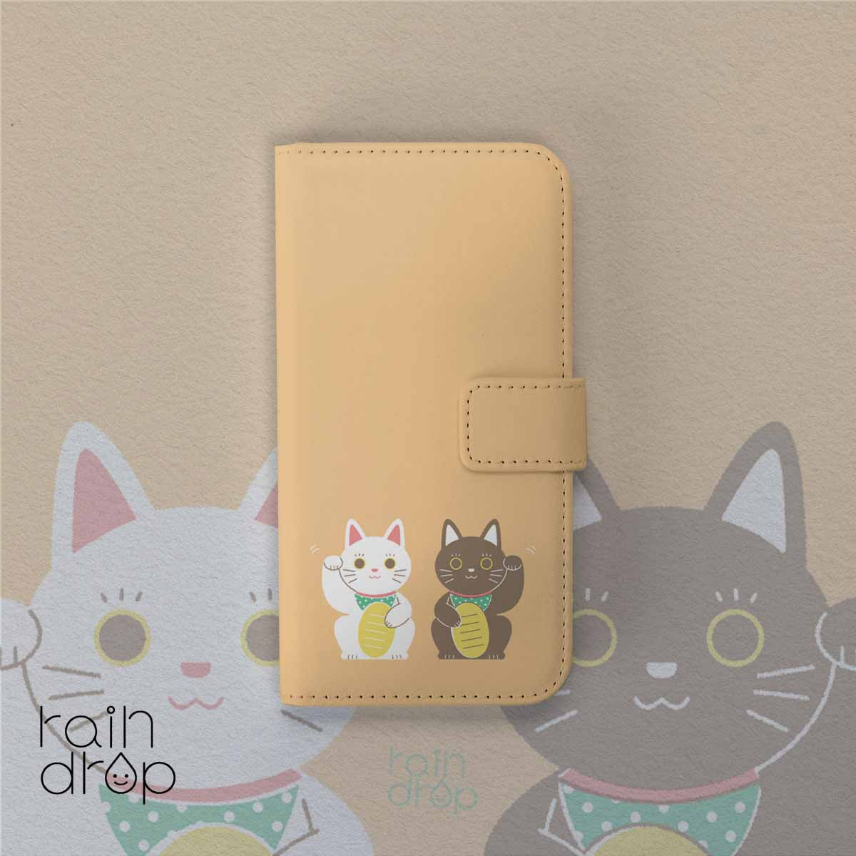 手帳ケース カバー かわいい おしゃれ 大人可愛い iphoneケース アイフォン アイフォンケース Android Xperia Galaxy AQUOS arrows OPPO Xiaomi スマホケース 手帳型つゆこ イラストまねきねこ 招き猫 日本 ネコ 和柄 和風 縁起
