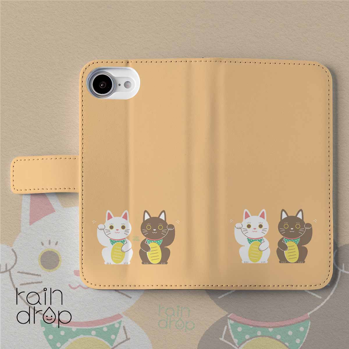 手帳型スマホケース 招き猫 かわいい