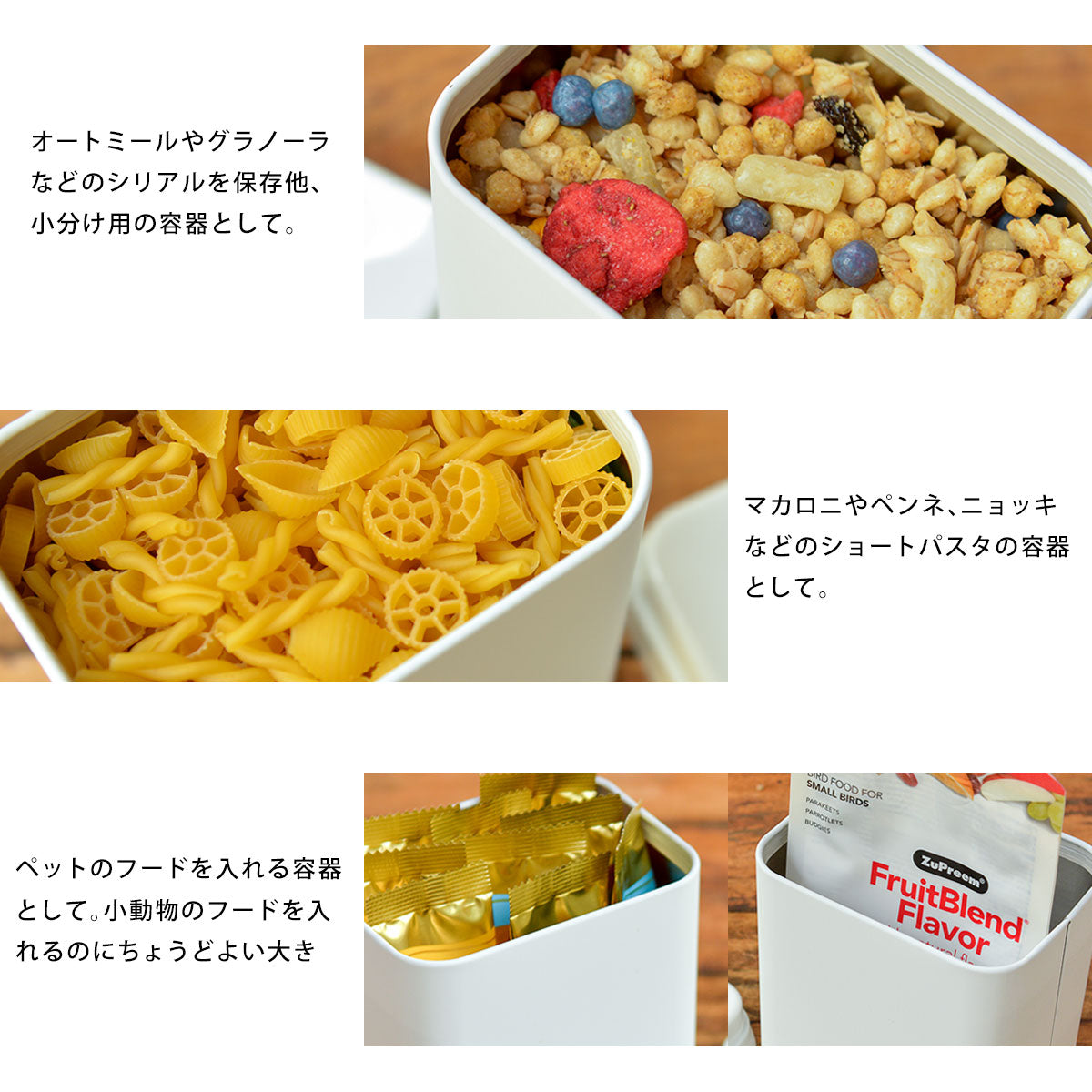 ・コーヒー豆や茶葉、調味料、ショートパスタやシリアルなどの食料品の保存容器としておすすめ。