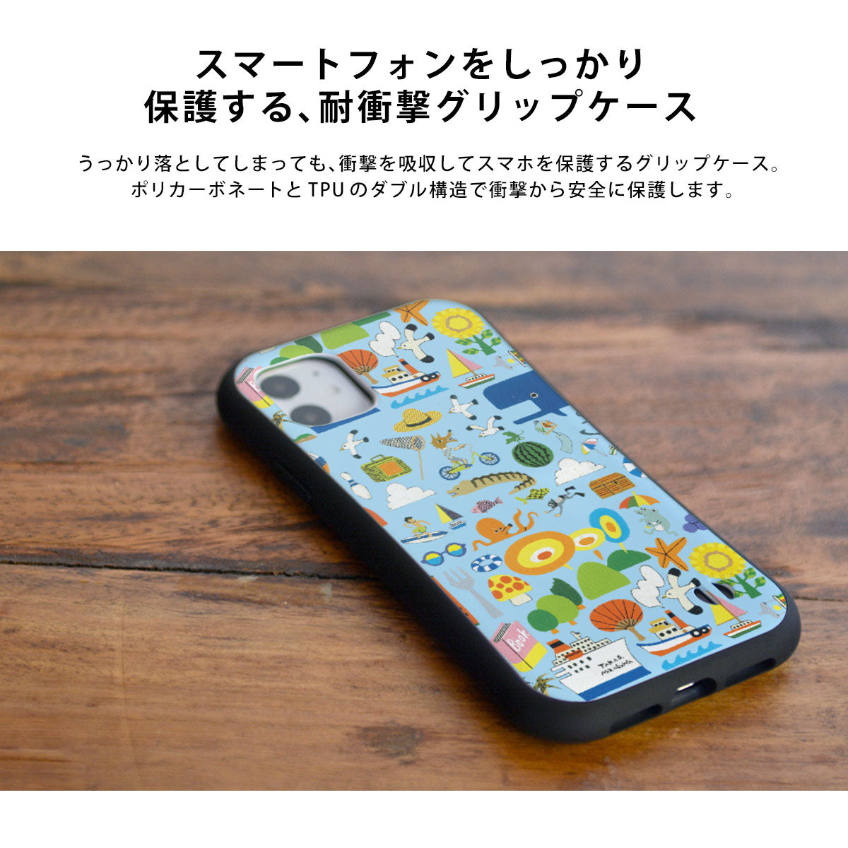 ・耐衝撃に優れる、にぎりやすいグリップケース。iPhoneに対応。