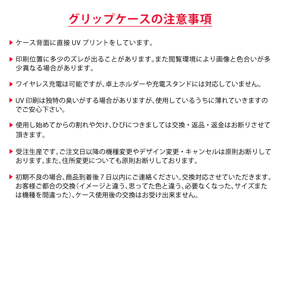 完全受注販売なのでお客様都合・注文間違いなどのキャンセルや内容変更(機種違い、住所違い)はお断りしております。